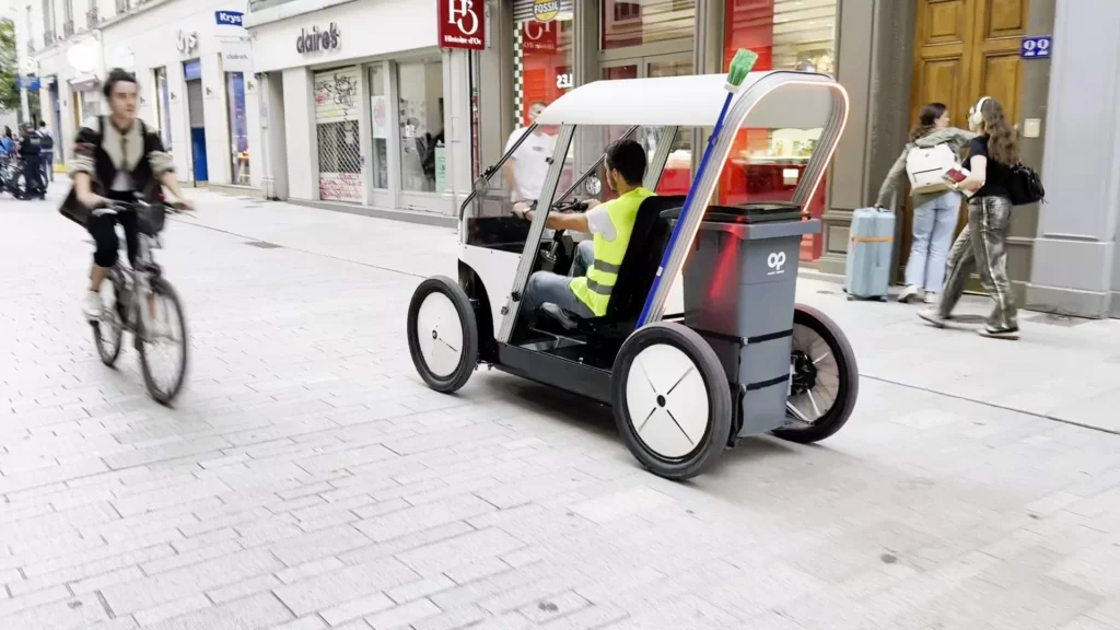 The platform supports different roles. Passenger layouts and cargo setups share the same base, so operators can configure it for local shuttles, municipal work, last-mile jobs, and site logistics without treating each use case as a separate vehicle program. Footprint-wise, it’s designed to stay close to the space a cargo bike takes, while offering far more enclosed volume.