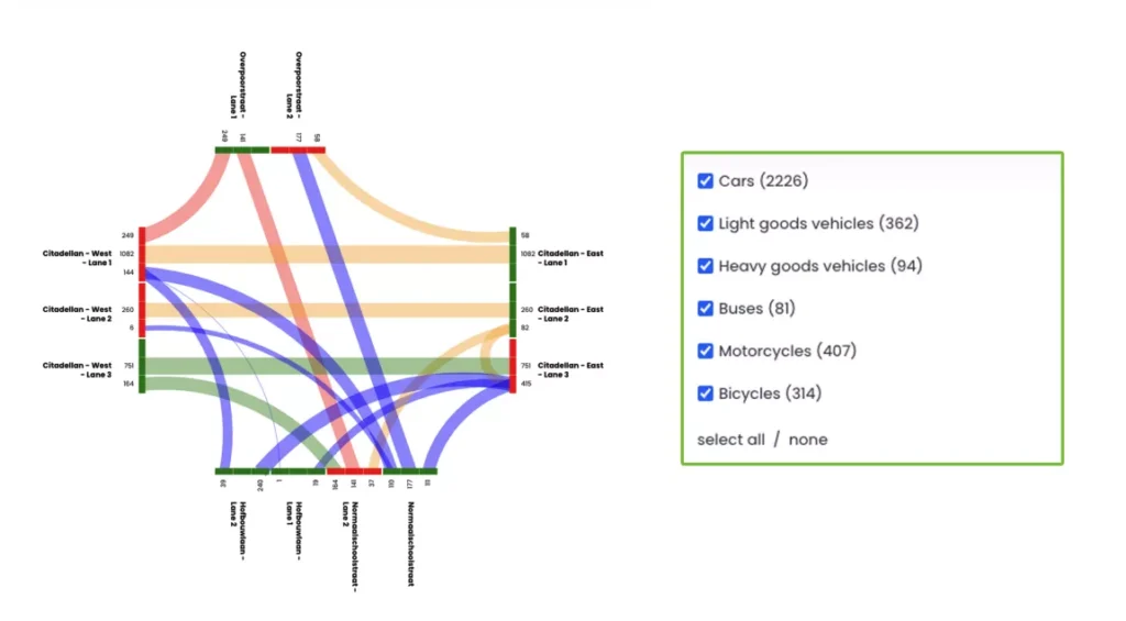 In Ghent, Belgium, the city flew drones over a busy roundabout and ran the video through GreenFlow. From just one hour of footage, the platform found 27 conflict points between cars, bikes, and people on foot, helping officials adjust signal timing to improve safety.