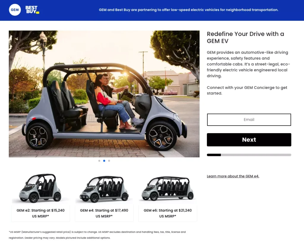Then there’s the retail wildcard. In 2025, Waev put GEM on BestBuy.com, making it the first street-legal EV sold through a mainstream electronics retailer. Buyers can spec a vehicle online, check out with a concierge, and have delivery coordinated through local dealers—a simple bridge between e-commerce and fleet sales.