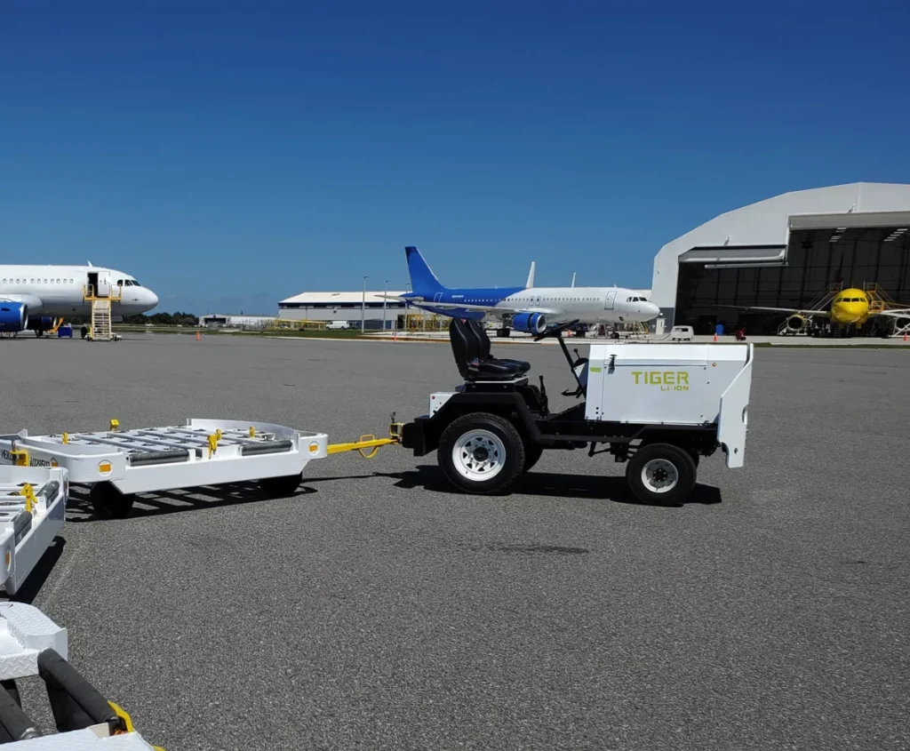 At the heavy end, the Tiger EV tow tractor cuts operating costs by up to 80% versus a diesel tug. Each unit avoids around 3.25 metric tons of CO₂ emissions per year, all while delivering the same towing performance.