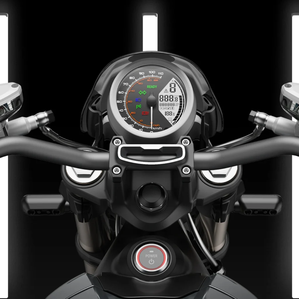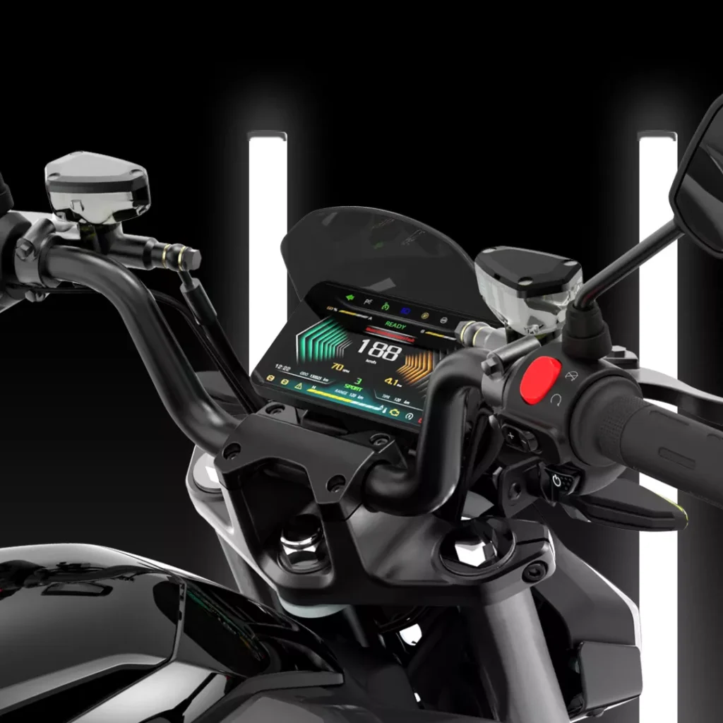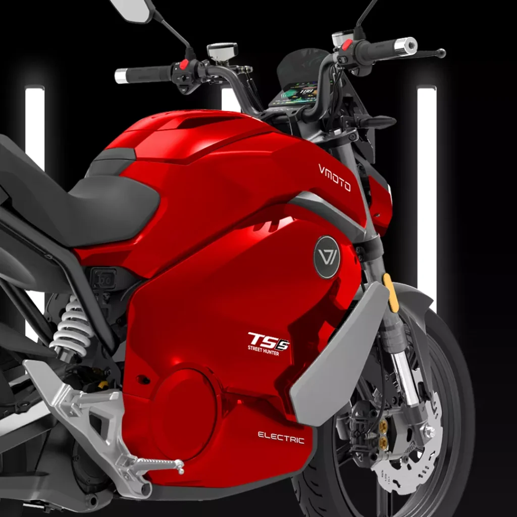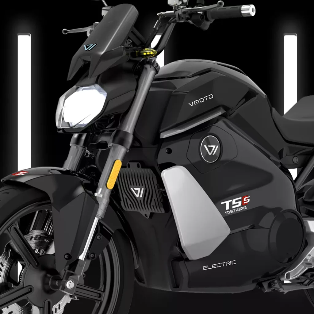 The TS Street Hunter S is where Vmoto pushes further into speed, rider aids, and a more overtly sporty feel. It still sits inside the brand’s urban electric logic, but it is aimed at riders who want something sharper and less utility-led than the company’s commuter scooters. Vmoto’s current brochure leans heavily into that mix of urban use, sport-bike character, and rider control.