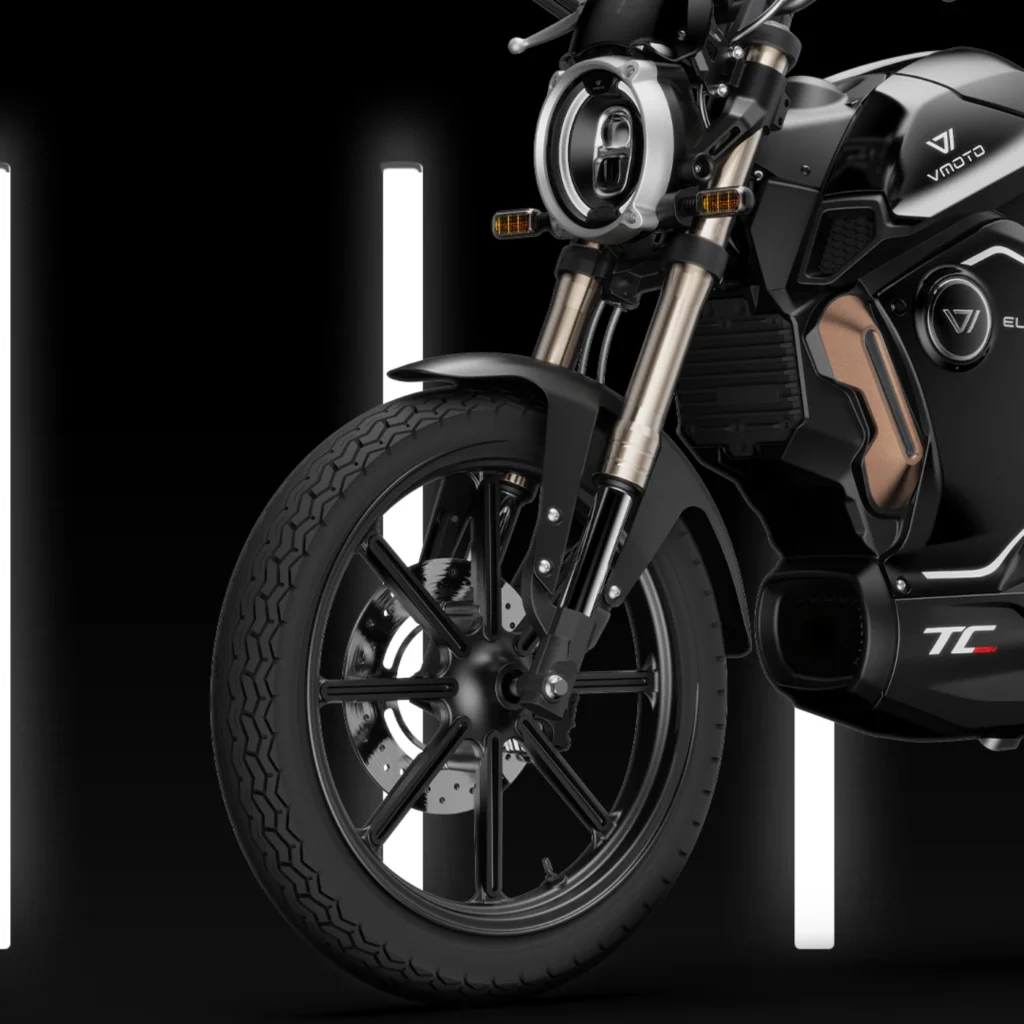 The TC Max is aimed at riders who want a more familiar motorcycle shape without giving up everyday city practicality. It sits closer to the commuter end of Vmoto’s range than the performance end, which makes it easier to read as an urban bike with a bit more character rather than a true long-distance replacement.