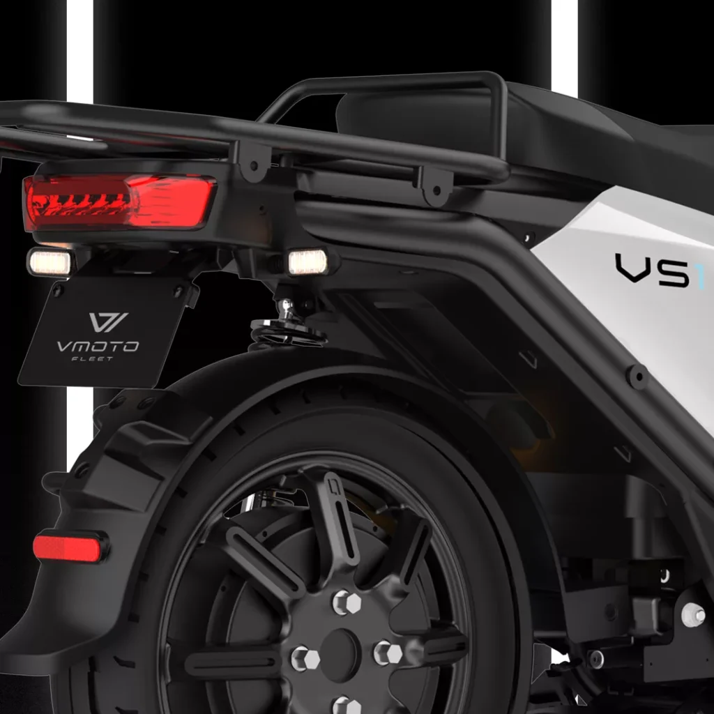 The VS1 is one of the clearest examples of how Vmoto thinks about fleet use. Vmoto presents it directly as a B2B vehicle, and the package is built around that role: repeated stop-start riding, loading and unloading, and long days in dense city traffic where stability and uptime matter more than style.